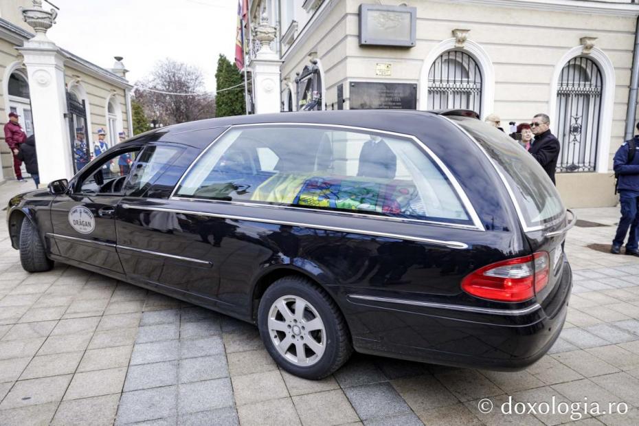 Mașina funerară a sosit în această dimineață, de la Focșani, în Piața Unirii din municipiul Iași. La ora 12.30, pe pietonalul Alexandru Lăpușneanu, în fața Muzeului Unirii, sicriul a fost transferat pe un dric tras de cai. La ceremonial au participat reprezentanți ai autorităților locale și județene, ai Jandarmeriei Române, ai Bisericii Ortodoxe Române, precum și ai celorlalte structuri din cadrul Ministerului Afacerilor Interne.