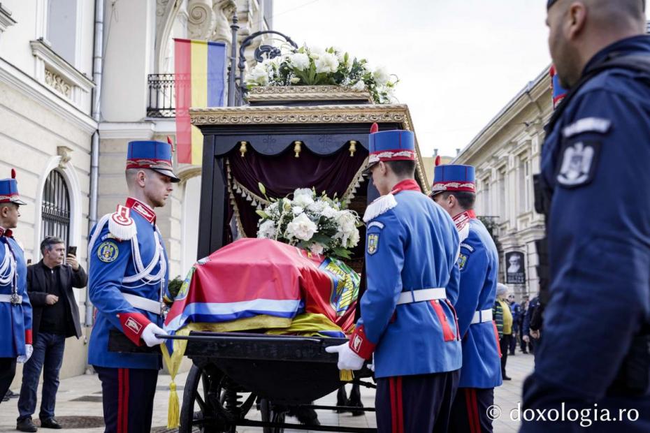 Cortegiul a plecat din Piața Unirii pe pietonalul Ștefan cel Mare, iar rămășițele au fost depuse în incinta Palatului Culturii, la ora 13.00, în cadrul unei slujbe oficiate de reprezentanții Arhiepiscopiei Iașilor.